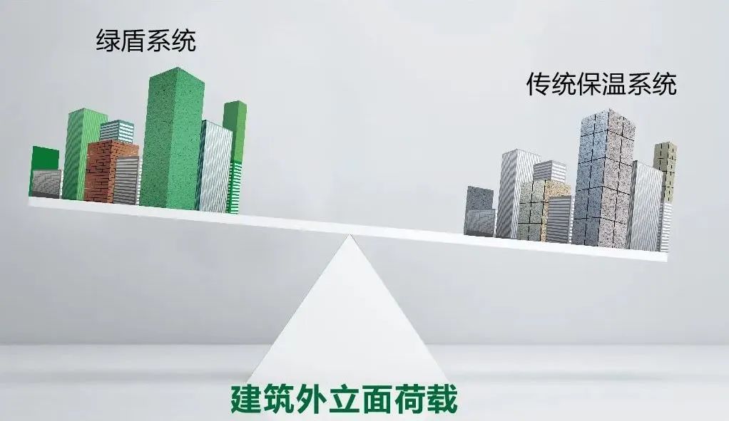 綠盾節能裝飾系統在減輕建筑外立面荷載的同時,5倍提高建筑外墻系統的拉伸粘結強度,解決傳統保溫砂漿易開裂脫落的問題。