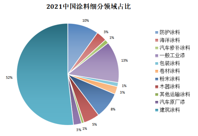 劉杰指出,從2021年中國與全球涂料行業細分對比來看,中國涂料行業細分領域占比與全球涂料細分領域占比并無太大差異,建筑涂料占比最大,其次是防護涂料。