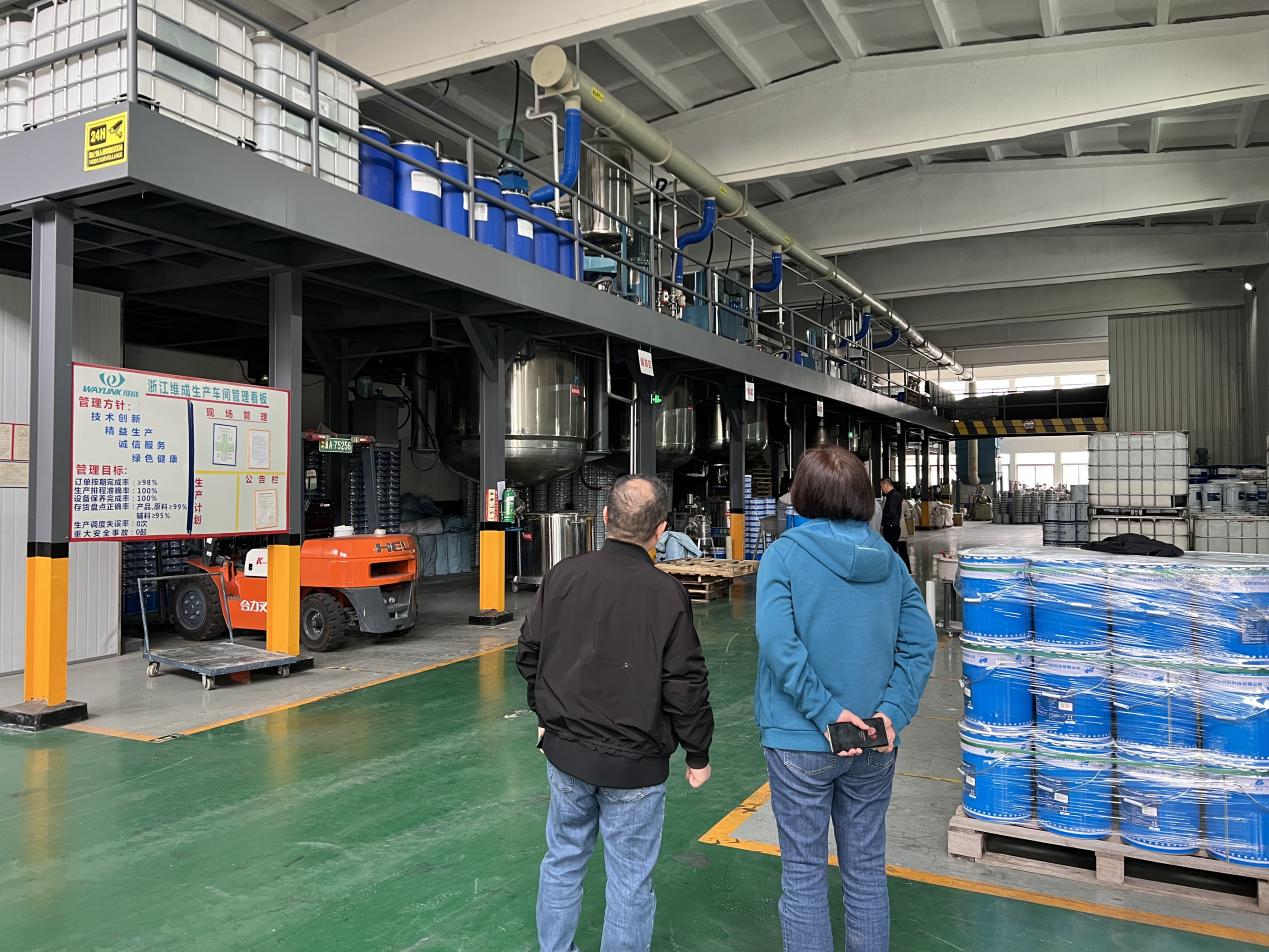 11月25日,寧波涂協吳曉明秘書長和王銀璐副秘書長繼續對長木(寧波)新材料科技有限公司位于紹興的生產基地、浙江維成新材料有限公司和浙江傳化涂料有限公司位于蕭山的生產基地進行了實地走訪調研和了解企業需求。