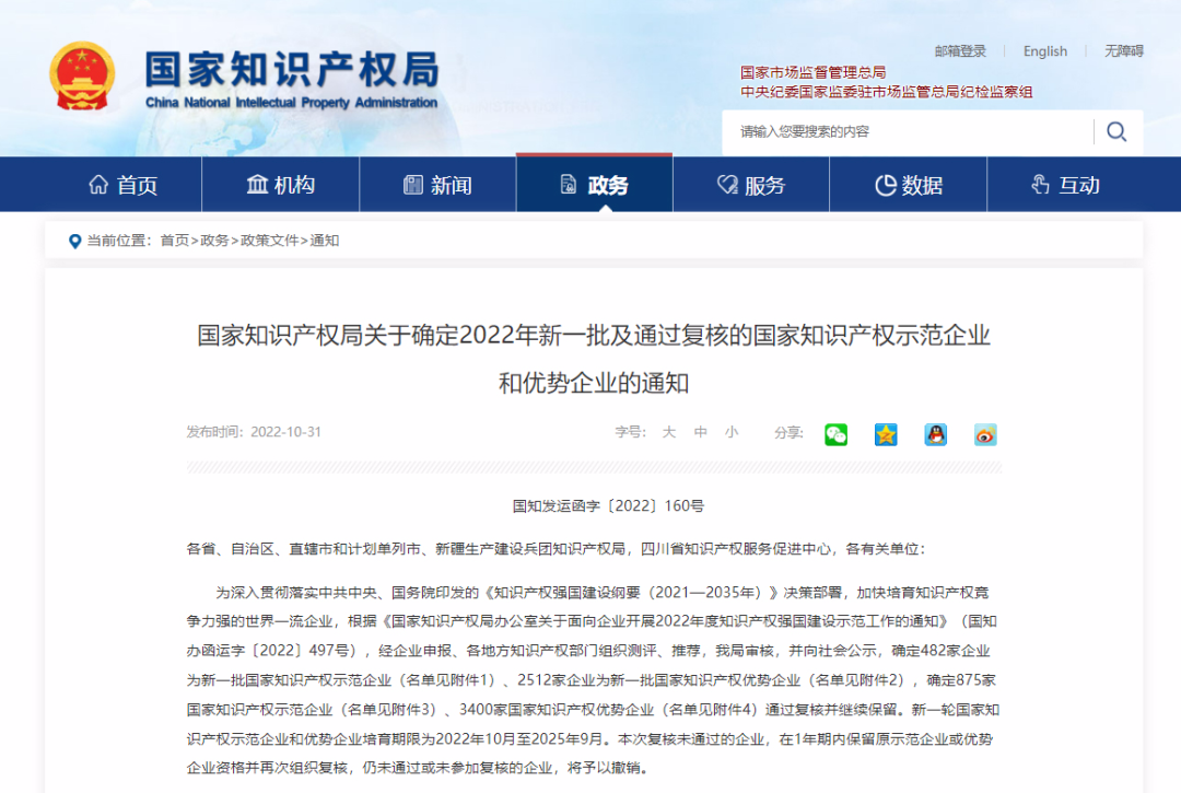 近日,國家知識產(chǎn)權(quán)局確定了2022年新一批及通過復(fù)核的國家知識產(chǎn)權(quán)示范企業(yè)和優(yōu)勢企業(yè)名單,信和憑借在知識產(chǎn)權(quán)創(chuàng)造、運用、管理及保護等方面的多重優(yōu)勢,通過“國家知識產(chǎn)權(quán)優(yōu)勢企業(yè)”復(fù)核認(rèn)定。