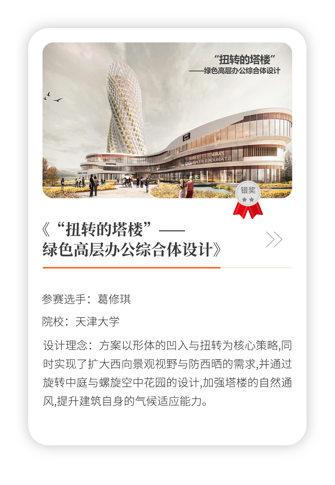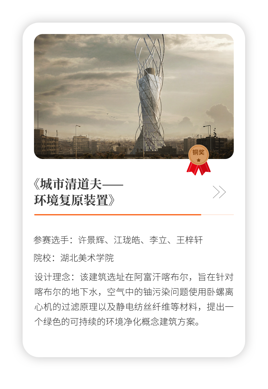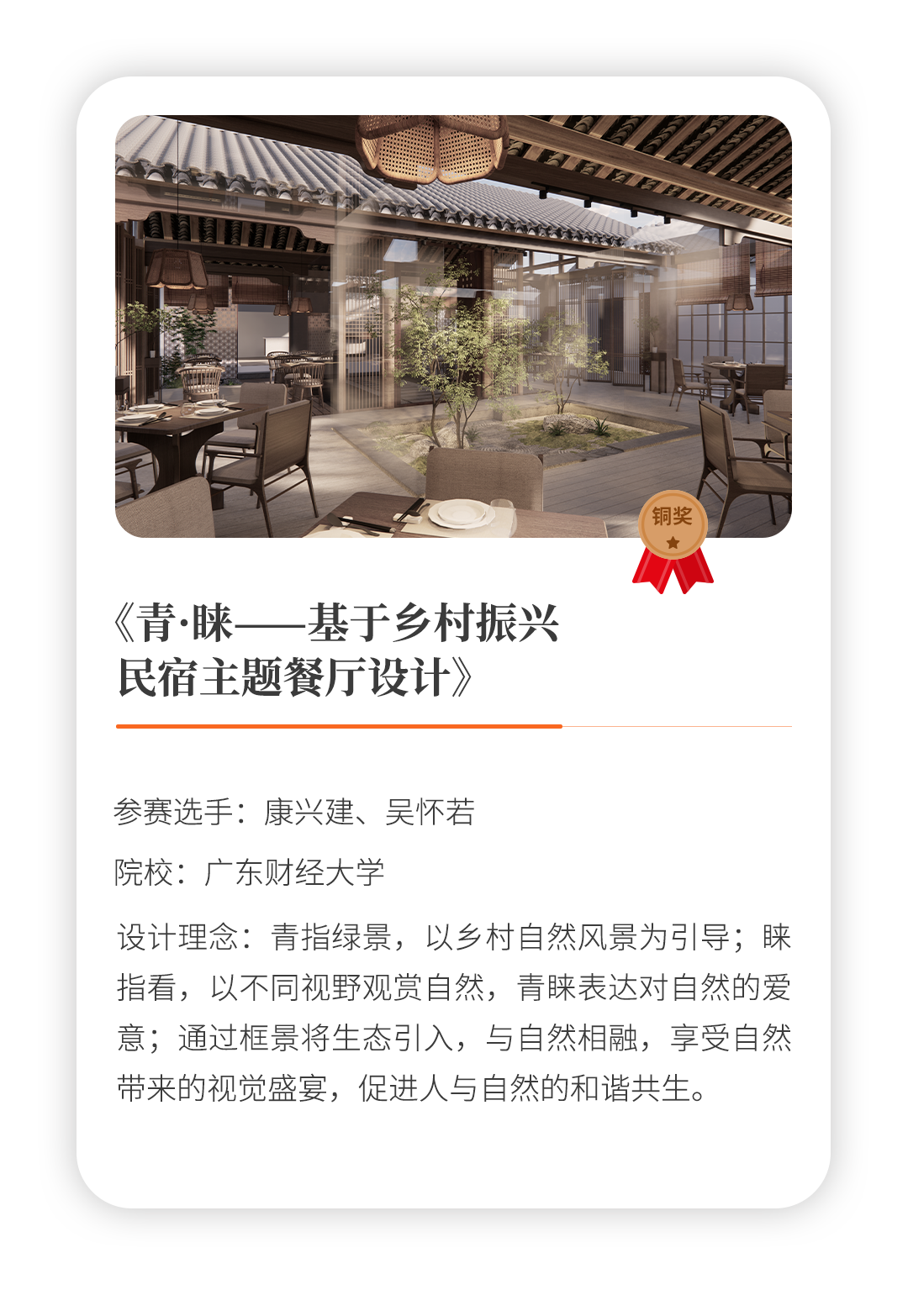 賽事設置建筑設計和室內設計兩條賽道,圍繞“生態人居,永續精‘彩’”這一主題對作品提出了不同的要求。在八位專業評委與聯合主辦方評審團的見證下,來自西安美術學院的韓祎、李婧瑜、吳錦瑤、王一凡創作的《“韌性·空間”河西傳統生土民堡聚落新體系探究設計》和來自清華大學美術學院的姚金昊、李禹霏創作的《夢境邊緣—酒吧設計》脫穎而出,分別摘得建筑組和室內組金獎。