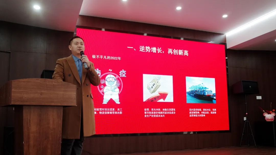 伴隨著熱烈的掌聲,魚童股份總經(jīng)理曾超為全體員工帶來的精彩的講話。2022年對于魚童而言,是極不平凡的一年。疫情防控、原材料價格波動、國內(nèi)需求收縮等對市場造成負面影響,魚童人積極進取,創(chuàng)新突破,實現(xiàn)了產(chǎn)銷量的逆勢增長,取得了值得自豪的業(yè)績突破。 在這辭舊迎新的時刻,曾總總結(jié)了魚童的競爭力與短板,也憧憬了魚童的未來。希望通過一系列變革,同所有魚童人一起打造成一個堅定以客戶為中心、擁有濃厚學(xué)習(xí)氛圍,敏捷進取的團隊,形成“魚您童行,為愛奮斗”的文化氛圍,實現(xiàn)魚童可持續(xù)健康發(fā)展。