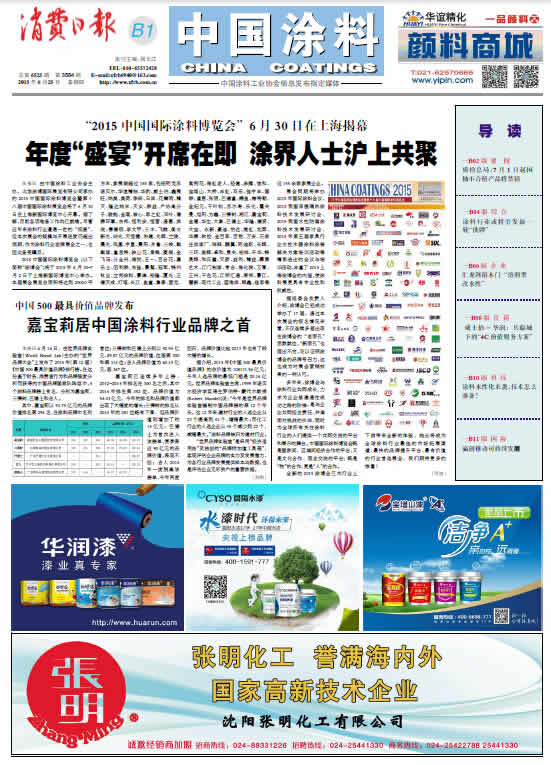 中國涂料報 2015年6月25日 星期四
