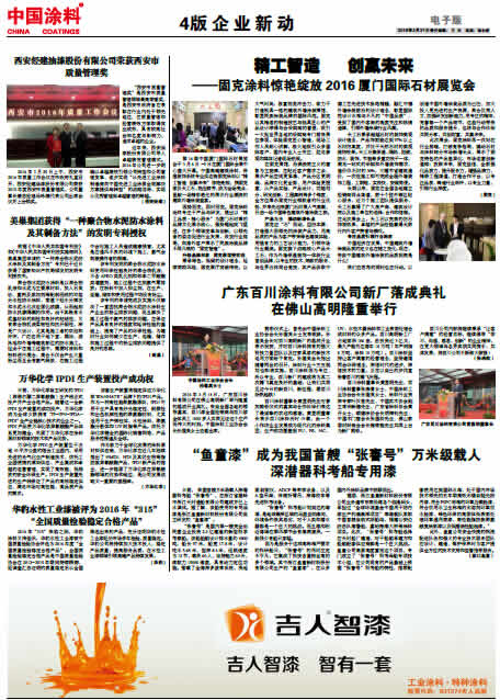 中國(guó)涂料報(bào) 2016年3月31日